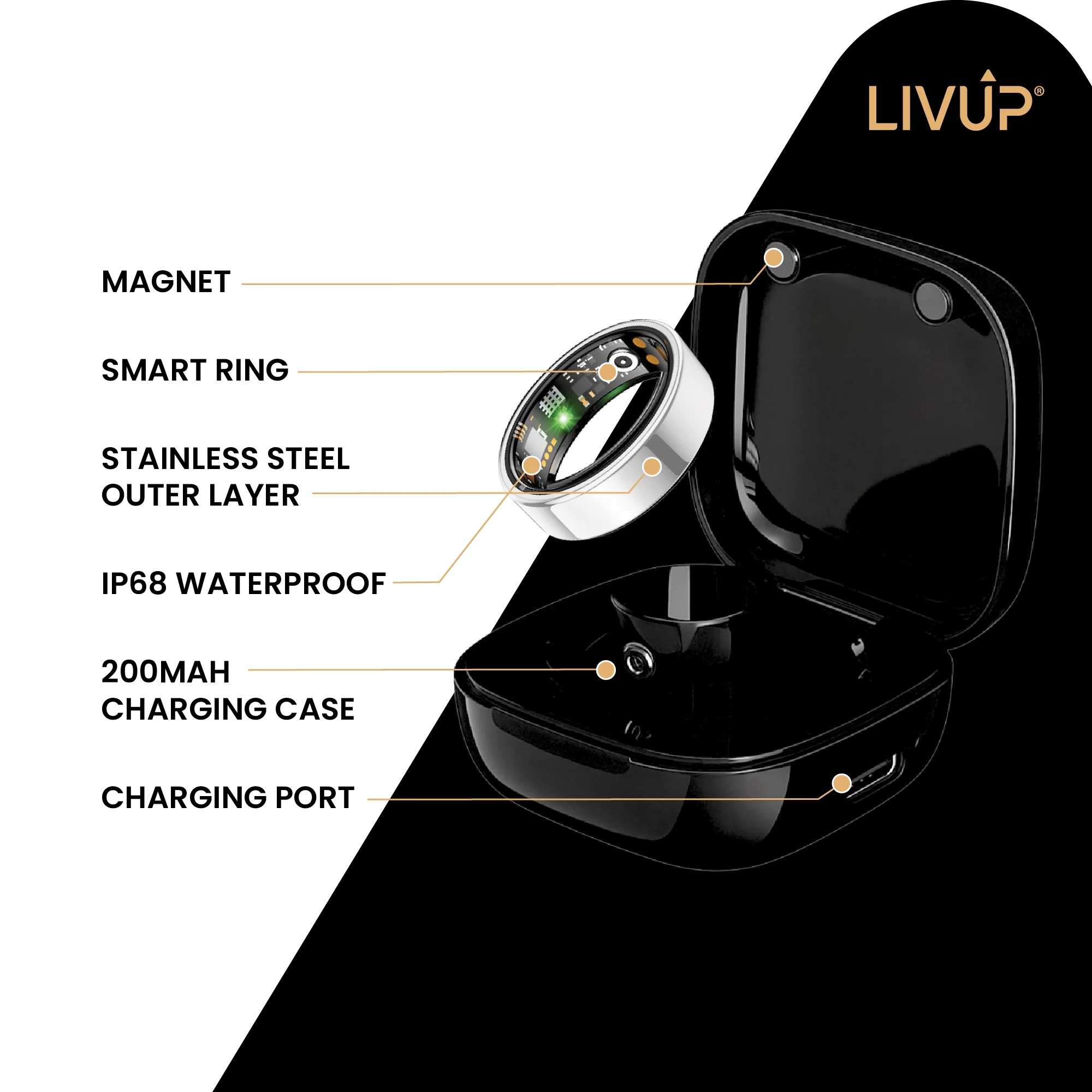 Stay connected to your health and lifestyle with the LivUp Smart Ring, a sleek and powerful Bluetooth health smart ring designed for daily performance. This compact wearable tracks your sleep patterns, monitors essential vital signs like heart rate and blood oxygen, and supports multiple exercise modes to help you stay active and reach your fitness goals.